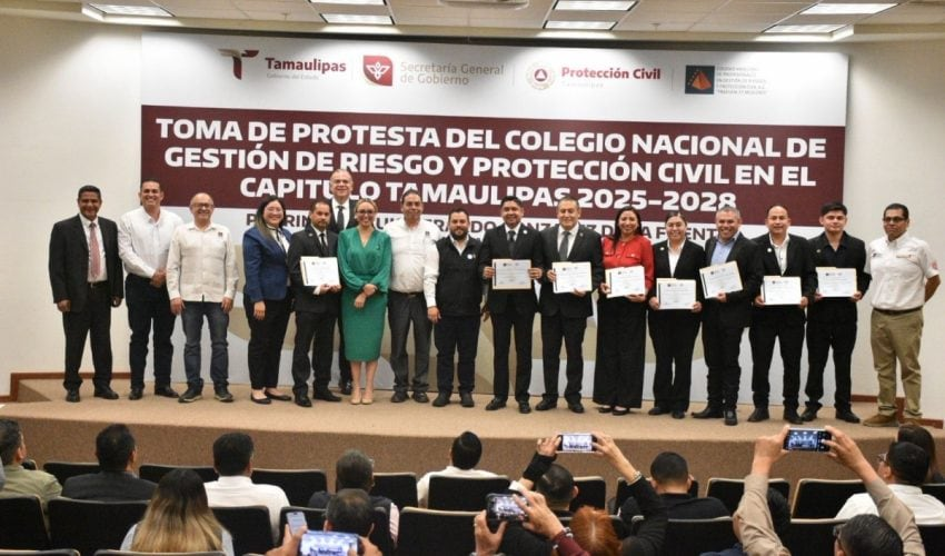 Ciudad Victoria,Tamaulipas.- Con el propósito de fortalecer la cultura de la prevención y consolidar la profesionalización en materia de protección civil, se llevó a cabo la toma de protesta del Capítulo Tamaulipas del Colegio Mexicano de Profesionistas en Gestión Integral de Riesgos y Protección Civil, organismo que contribuirá al desarrollo técnico y estratégico en la Gestión Integral de Riesgos en la entidad.